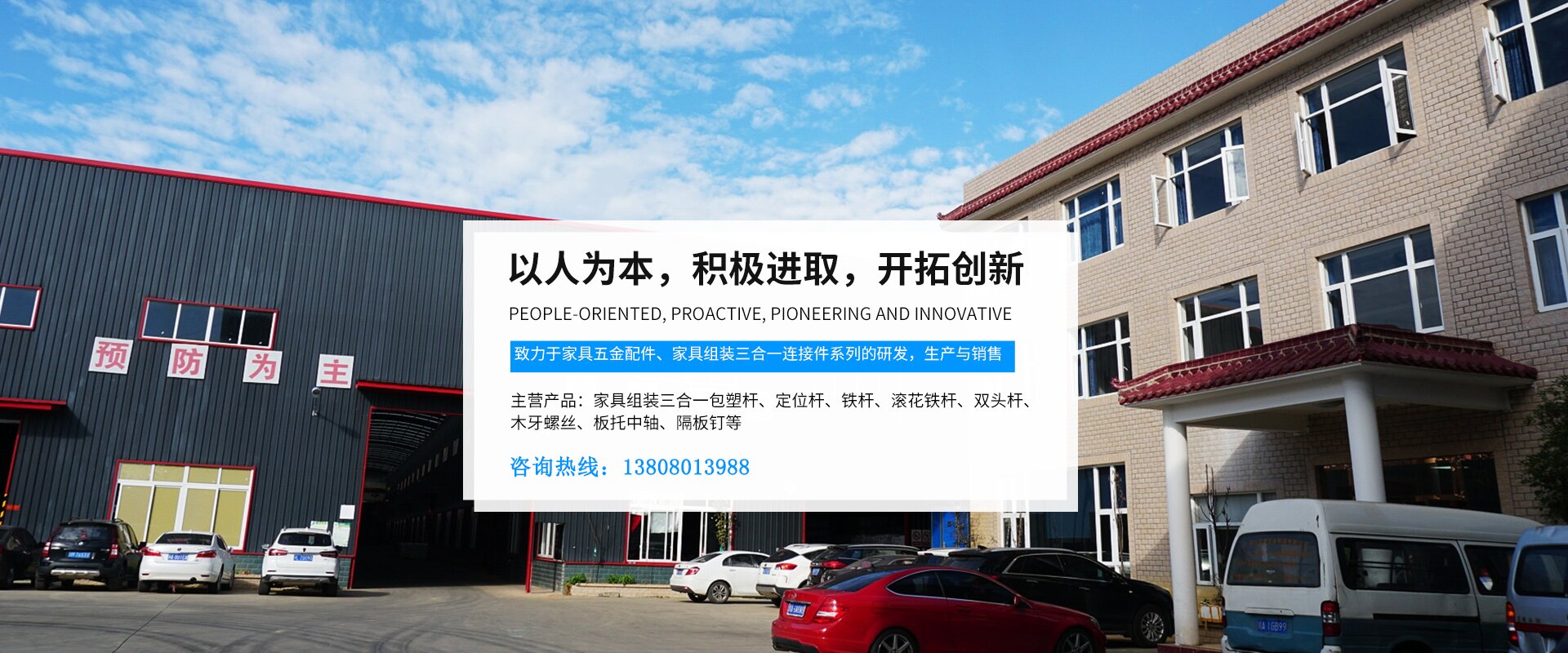 成都市聯(lián)盛五金制品有限公司成立于2012年,現(xiàn)擁有廠房面積16000平方米,主要從事家具五金配件、家具組裝三合一連接件系列的研發(fā),生產(chǎn)與銷售。公司目前主營產(chǎn)品:家具組裝三合一包塑桿、定位桿、鐵桿、滾花鐵桿、雙頭桿、木牙螺絲、板托中軸、隔板釘?shù)取?br> 公司現(xiàn)在具有雄厚的技術(shù)實力,從模具設(shè)計、模具制作到產(chǎn)品生產(chǎn)都有強大的技術(shù)團隊和管理團隊,擁有家具五金配件從業(yè)十年以上的技術(shù)人員與管理人員多名,另有多年五金配件生產(chǎn)工作經(jīng)驗的員工40余人,都有著豐富的生產(chǎn)經(jīng)驗和敬業(yè)精神。公司現(xiàn)擁有現(xiàn)代先進的五金生產(chǎn)設(shè)備150余臺,并且公司正在全面推行ISO9001:2016國際質(zhì)量管理體系,力求生產(chǎn)高效、節(jié)能,制造出質(zhì)量穩(wěn)定、安全,令客戶滿意的高品質(zhì)產(chǎn)品。